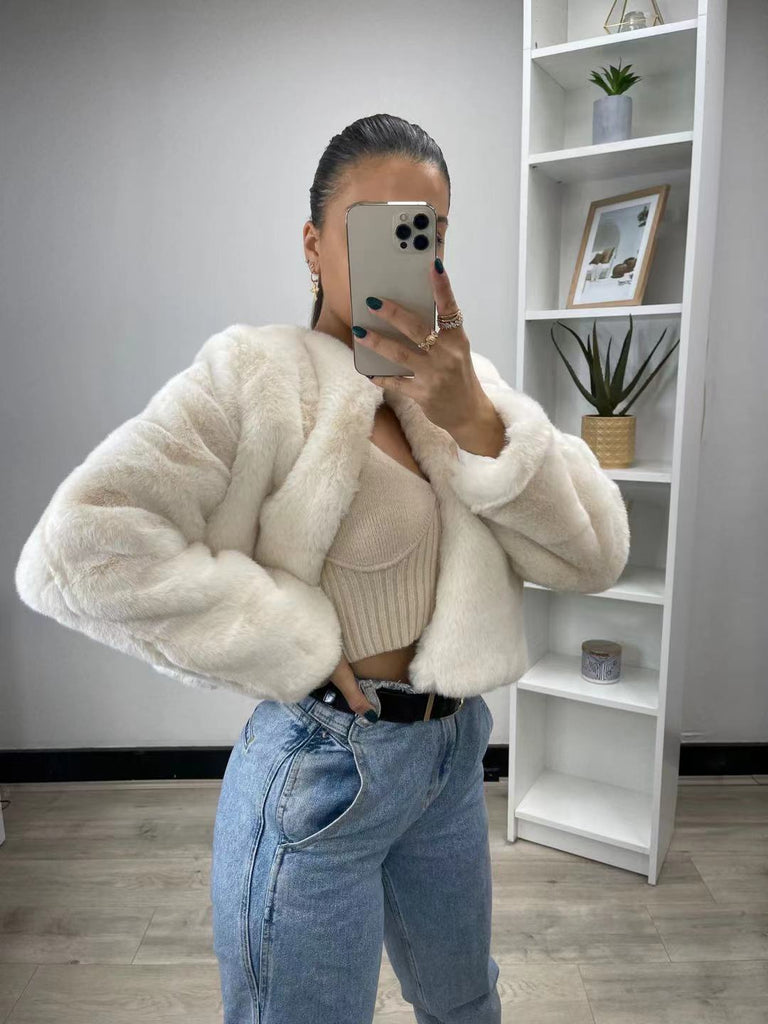 Millie faux fur jacket available in Sage, Milk, Latte, and Black