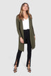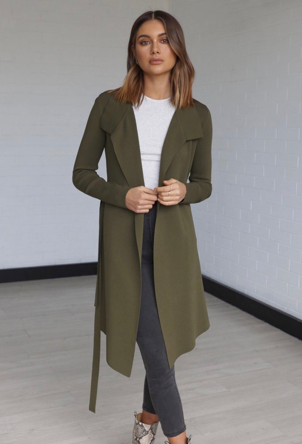 The Xander Cardigan features a stretchy crepe fabric, belt tie up and lapel collar. This Cardigan is easily dressed up and down with a simple change of shoe.