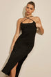 Our Aston Midi Dress features long midi length, soft curved neckline featuring cross straps at the front, adjustable spaghetti straps, side leg split and a centre back invisible zipper. This garment has lining and slight stretch from the fabric.