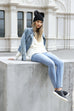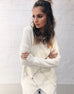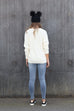 This subtle ribbed style features a relaxed body, weave detail on the front of the style, round neckline, and ribbed sleeve and hem panels.