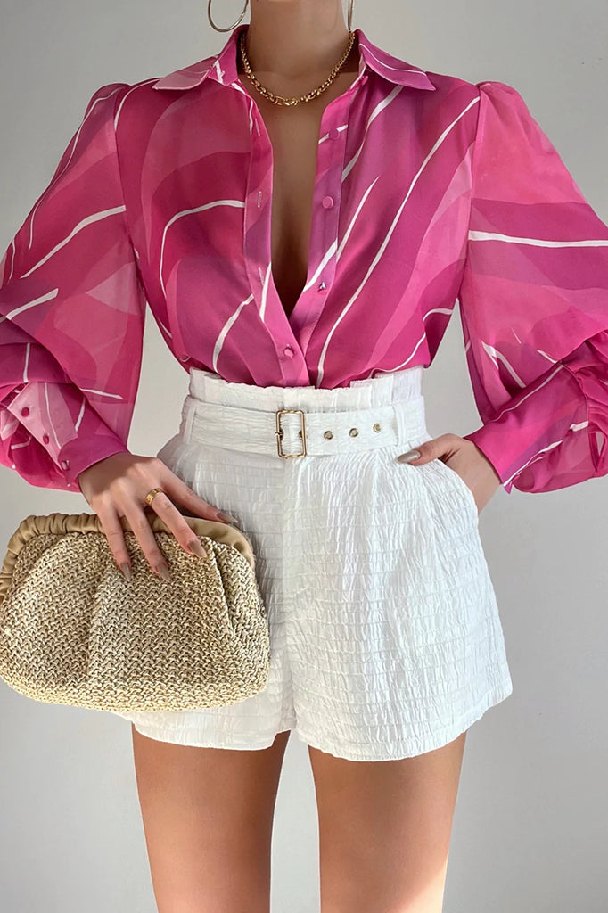 Our Fleetwood Blouse features a long puff sleeve with button detailing, centre-front buttons, and a collar. This garment is slightly sheer, no lining and no stretch throughout the garment.